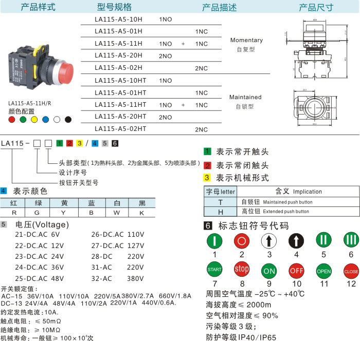 首页 产品中心 按钮系列 LA115-A5按钮系列 高位钮(自锁型/自复型)