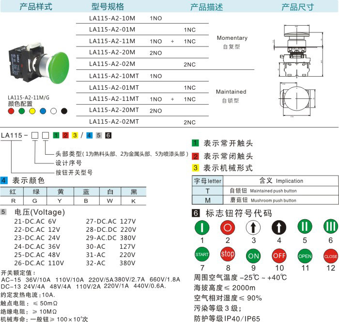 首页 产品中心 按钮系列 LA115-A2按钮系列 蘑菇钮(自锁型/自复型)