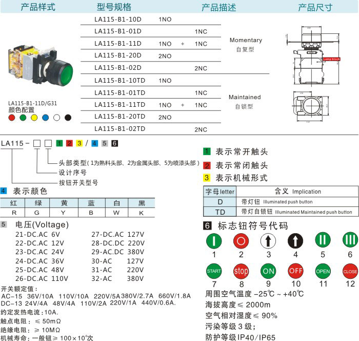 首页 产品中心 按钮系列 LA115-B1按钮系列 带灯平钮(自锁型/自复型)