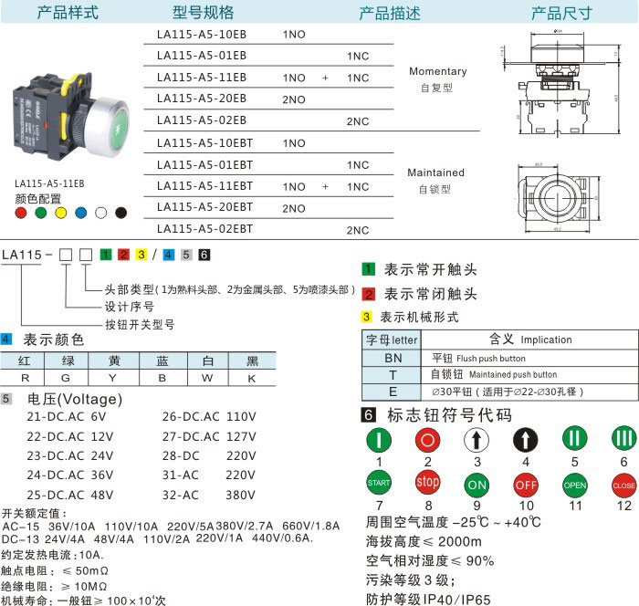 首页 产品中心 按钮系列 LA115-A5按钮系列 带字平钮(自锁型/自复型)