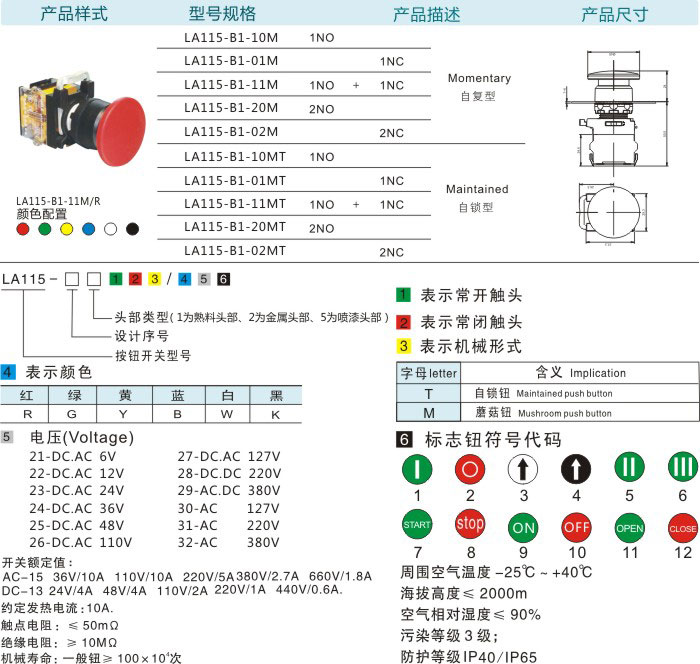 首页 产品中心 按钮系列 LA115-B1按钮系列 蘑菇钮(自锁型/自复型)