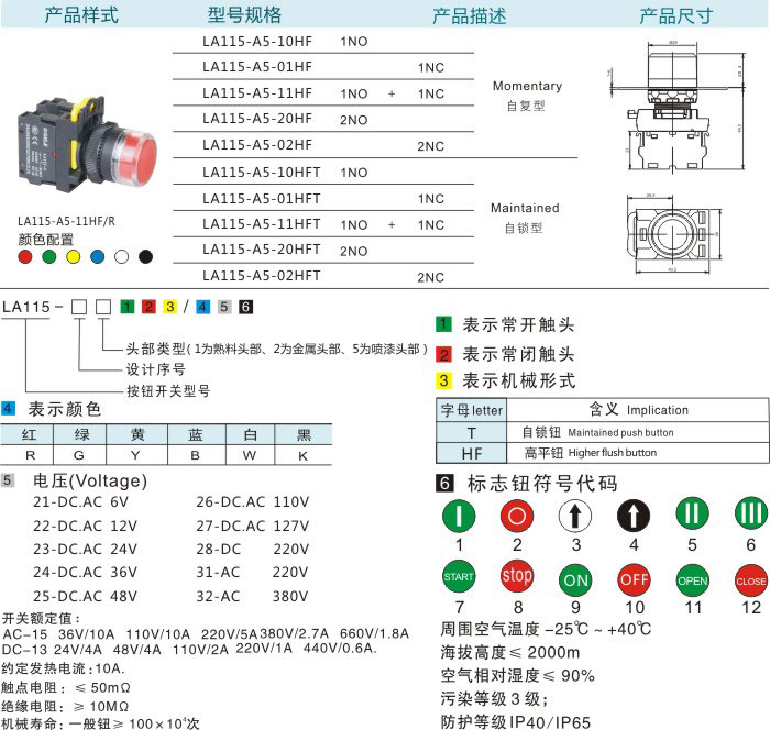 首页 产品中心 按钮系列 LA115-A5按钮系列 高平钮(自锁型/自复型)