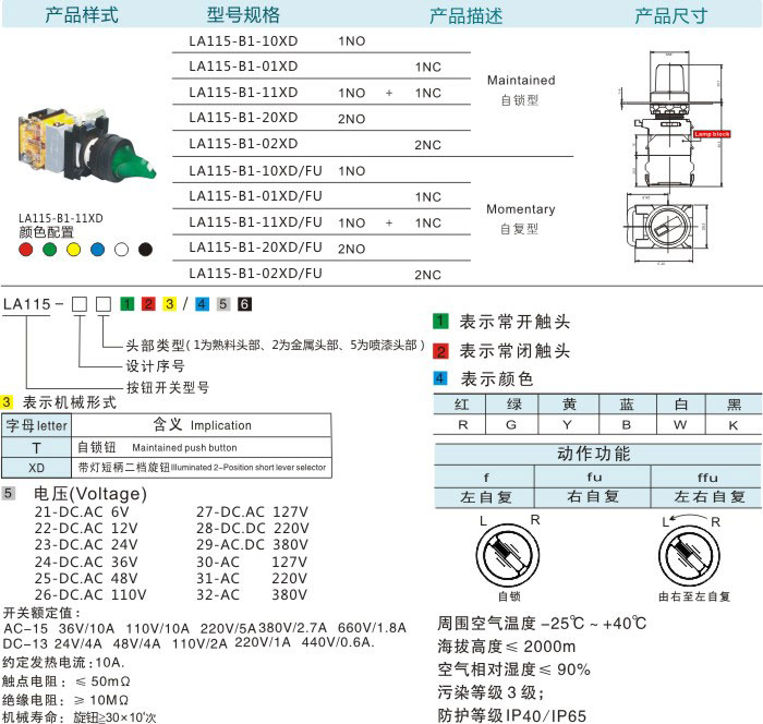 首页 产品中心 按钮系列 LA115-B1按钮系列 带灯旋钮(自锁型/自复型)