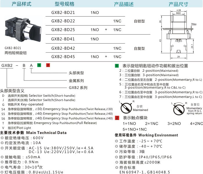 两档短柄旋钮